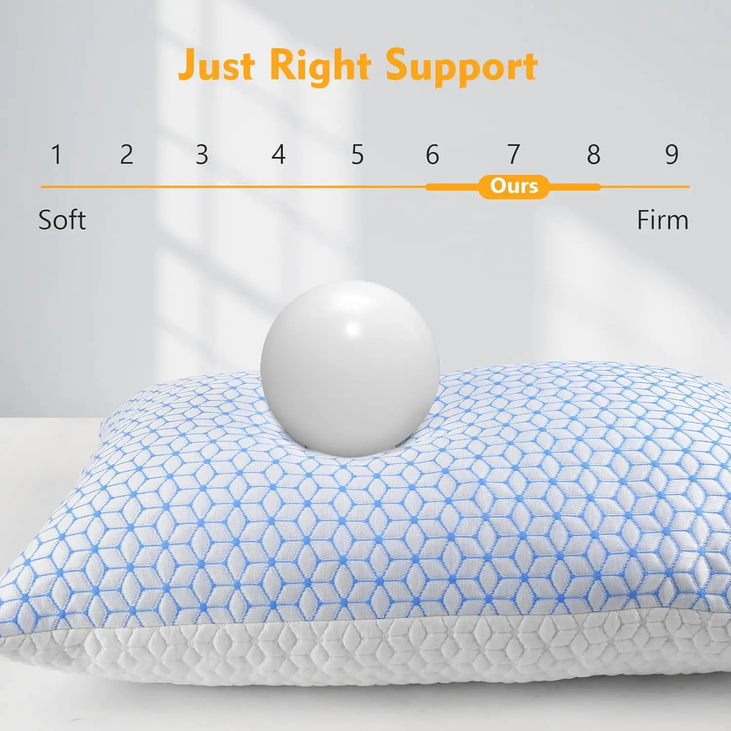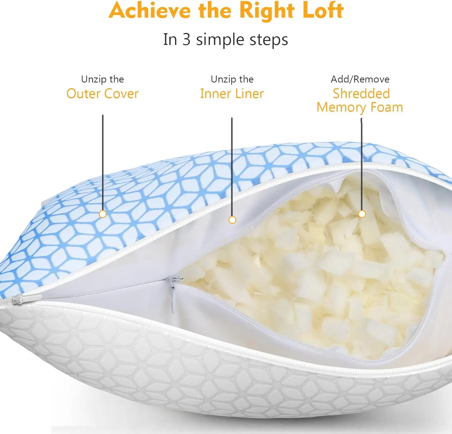 Experience ultimate comfort with our King Size Memory Foam Pillows Set of 2. Designed to enhance your sleep quality, these pillows offer a perfect blend of firm and soft support, making them ideal for all sleeping positions. Key Features: - **Cooling Technology**: Infused with breathable materials that help regulate temperature, keeping you cool and comfortable throughout the night. - **Adjustable Firmness**: Easily customize the pillow's firmness by adding or removing foam layers to suit your personal preference and sleeping style. - **Versatile Support**: Perfectly contours to your head, neck, and shoulders, providing optimal alignment for side, back, and stomach sleepers. - **Durable Construction**: Made from high-quality shredded memory foam that retains its shape over time, ensuring long-lasting comfort and support. - **Hypoallergenic Materials**: Free from harmful chemicals and allergens, promoting a healthier sleep environment for sensitive individuals. Benefits: 1. **Improved Sleep Quality**: The adaptive memory foam reduces pressure points, helping you wake up refreshed without aches or pains. 2. **Enhanced Comfort**: The cooling effect prevents overheating, allowing for a more restful night's sleep in any season. 3. **Customizable Fit**: Adjust the pillow to match your unique needs, whether you prefer a firmer or softer feel for better spinal alignment. 4. **Easy Maintenance**: Includes a removable cover that is machine washable for simple cleaning and hygiene upkeep. 5. **Value Pack**: This set of two king-size pillows offers great value for couples or those who want an extra pillow on hand. Ideal For: Anyone seeking relief from neck pain, restless sleepers looking for better support, or individuals wanting to upgrade their bedding with premium comfort features. Transform your bedroom into a sanctuary of relaxation with these versatile pillows.